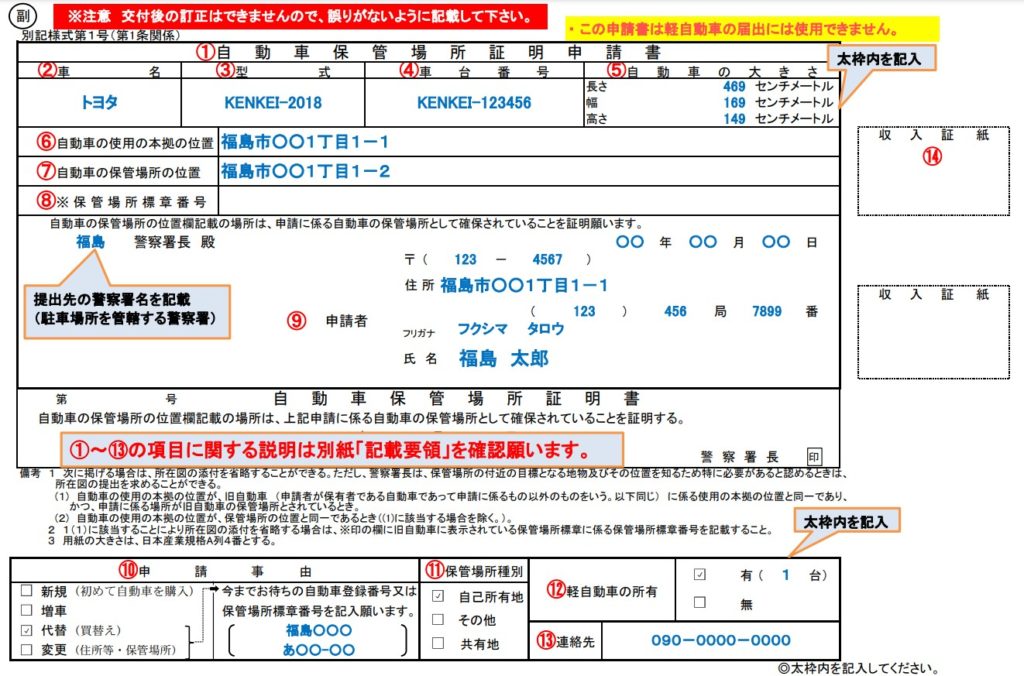 自動車保管場所証明申請書(以下、申請書)は各都道府県によって記載事項が少し違っています。